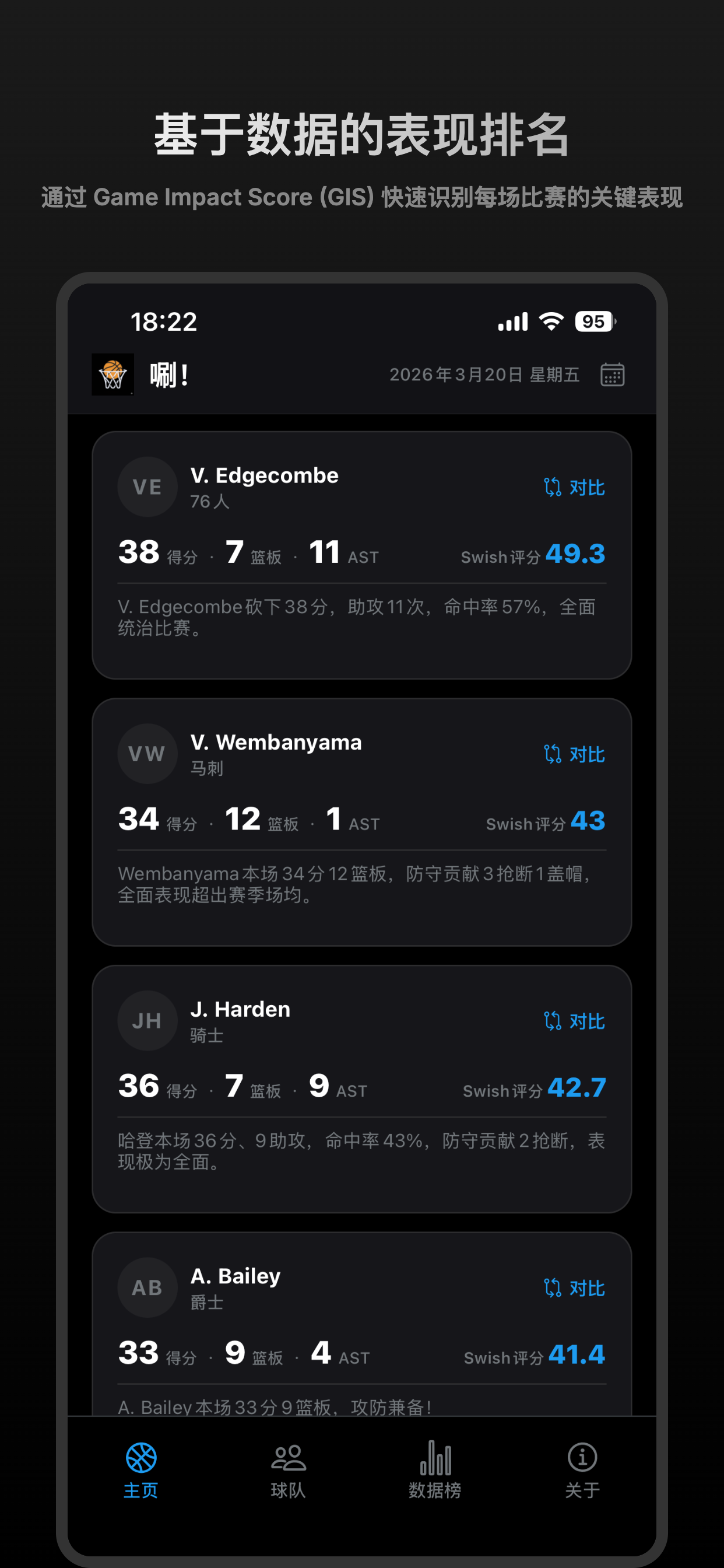 没有噪声,只有清晰、结构化的核心信息,几秒钟内把比赛读懂。